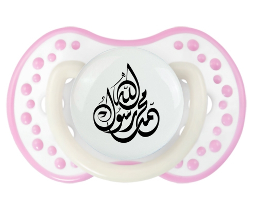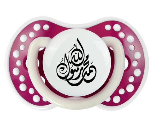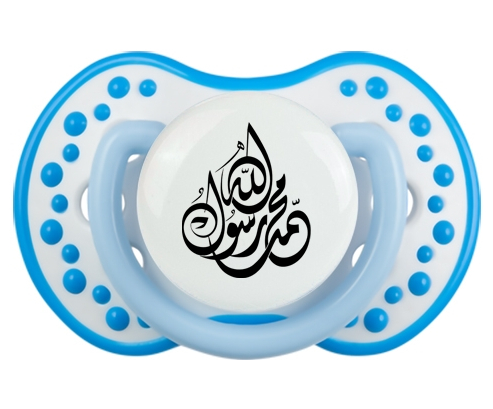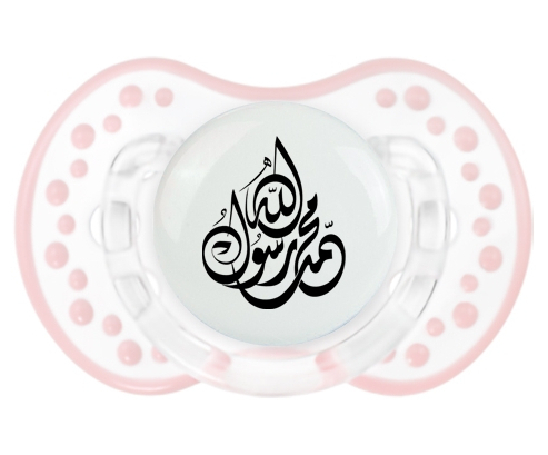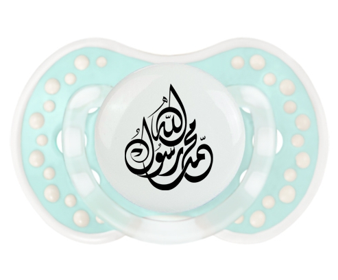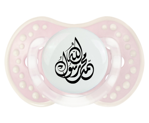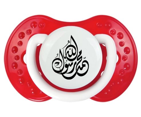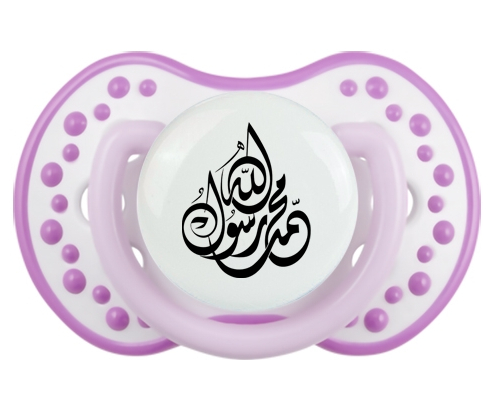 Chupete de bebé personalizado allah mohamed rassoul allah en árabe con punta LOVI Dynamic de la marca Lovi Dynamic con estampado en Colores de la colección Islam .La silicona se reconoce por su color transparente. Es un material flexible, suave, insípido e inodoro y ofrece al bebé una succión más fácil gracias a su flexibilidad.