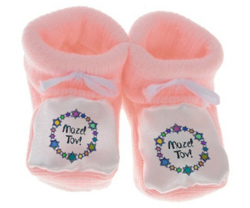 Zapatillas personalizadas para bebés con el diseño: Mazel Tov diseño-1 Bebé , para recién nacidos de 0 a 1 mes. Esta zapatilla es el regalo ideal, sobre todo personalizado, te enamorará. Extremadamente suave y muy bonito, también es perfecto para calentar los pies de tu bebé. Prácticos y cómodos, se calzan como calcetines y están fabricados en algodón (suela) - poliéster (parte superior) - acrílico (dorso).