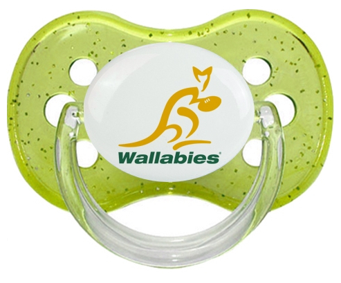 Chupete de bebé personalizado Australia Rugby XV con punta Cereza de la marca Canpol Babies con estampado en Colores de la colección Deporte / Ocio .La silicona se reconoce por su color transparente. Es un material flexible, suave, insípido e inodoro y ofrece al bebé una succión más fácil gracias a su flexibilidad.