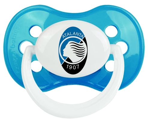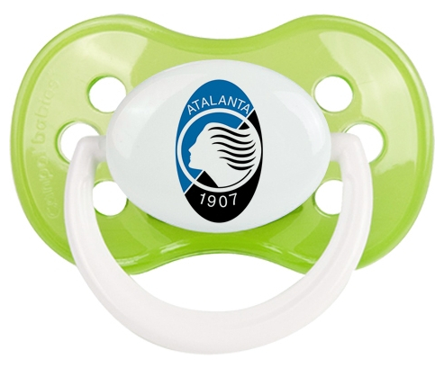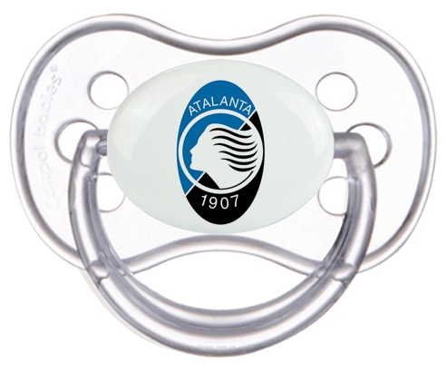 Chupete de bebé personalizado Atalanta Bergame con punta Anatómica de la marca Canpol Babies con estampado en Colores de la colección Campeonato italiano .La silicona se reconoce por su color transparente. Es un material flexible, suave, insípido e inodoro y ofrece al bebé una succión más fácil gracias a su flexibilidad.