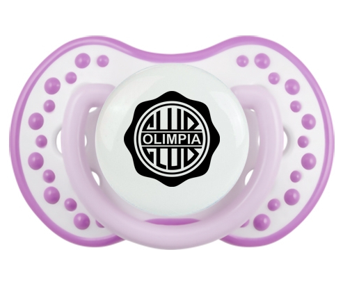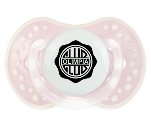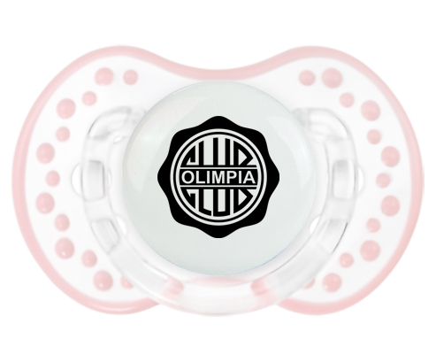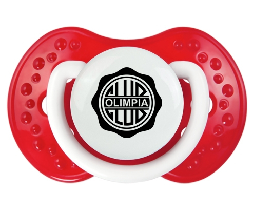 Chupete de bebé personalizado Club Olimpia con punta LOVI Dynamic de la marca Lovi Dynamic con estampado en Colores de la colección Campeonato Sudamericano .La silicona se reconoce por su color transparente. Es un material flexible, suave, insípido e inodoro y ofrece al bebé una succión más fácil gracias a su flexibilidad.