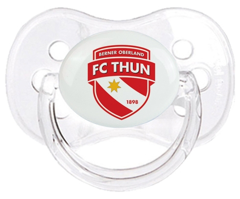Chupete de bebé personalizado FC Thoune con punta Cereza de la marca Canpol Babies con estampado en Colores de la colección Campeonato Suiza .La silicona se reconoce por su color transparente. Es un material flexible, suave, insípido e inodoro y ofrece al bebé una succión más fácil gracias a su flexibilidad.
