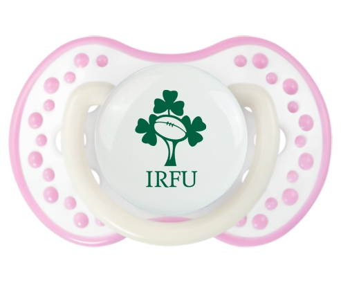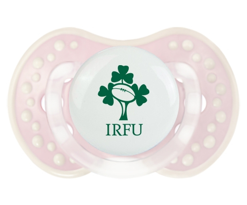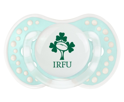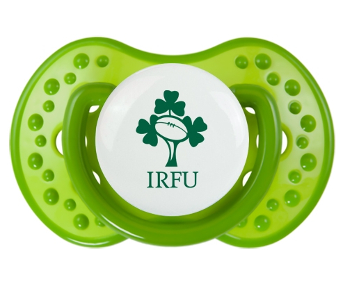 Chupete de bebé personalizado Irland Rugby XV con punta LOVI Dynamic de la marca Lovi Dynamic con estampado en Colores de la colección Rugby .La silicona se reconoce por su color transparente. Es un material flexible, suave, insípido e inodoro y ofrece al bebé una succión más fácil gracias a su flexibilidad.