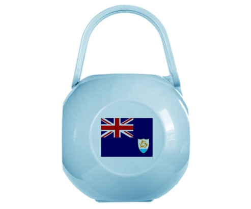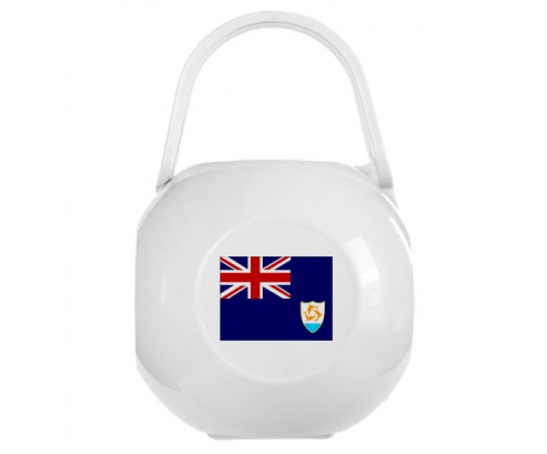 Caja portachupetes personalizado: Bandera Anguilla , con estampado a color y que completa toda la gama ( Chupete, Pinza para chupete, Babero, Botitas, Bodies , Caja portachupetes y gorro).