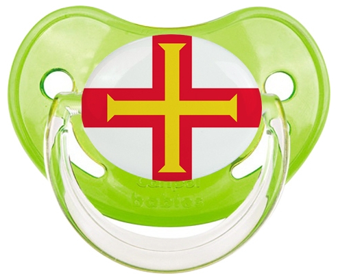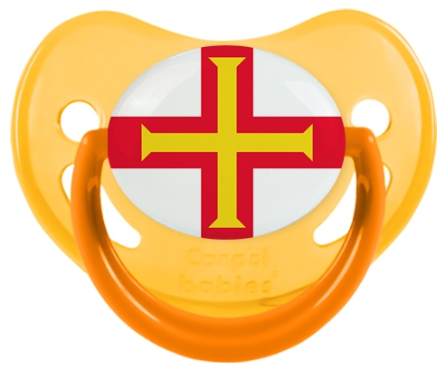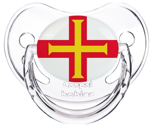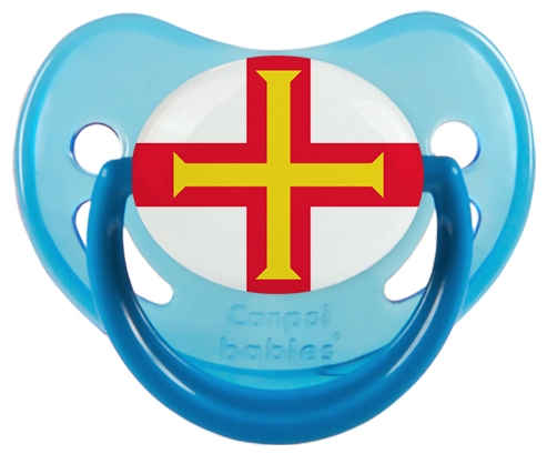 Chupete de bebé personalizado Bandera de Guernsey con punta Fisiológica de la marca Canpol Babies con estampado en Colores de la colección Bandera .La silicona se reconoce por su color transparente. Es un material flexible, suave, insípido e inodoro y ofrece al bebé una succión más fácil gracias a su flexibilidad.