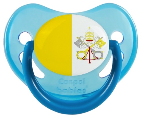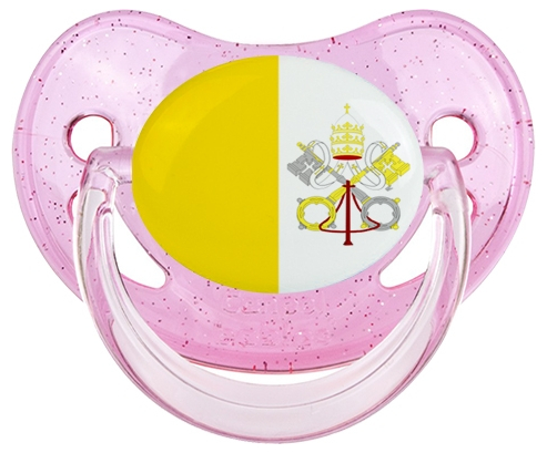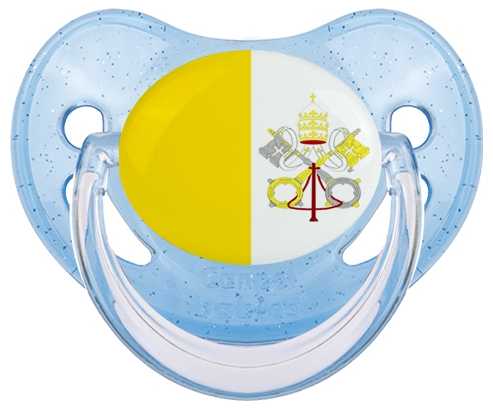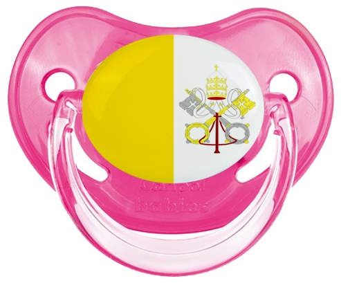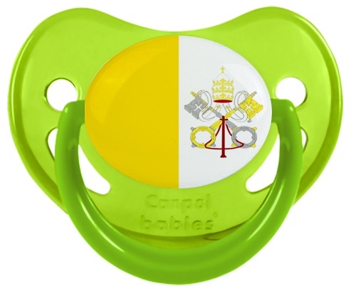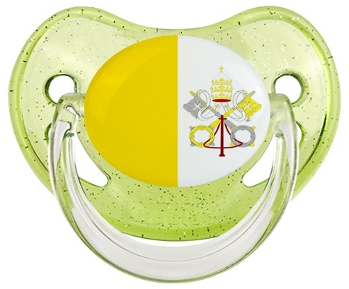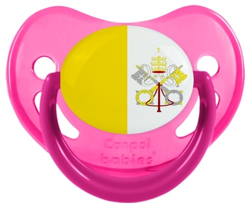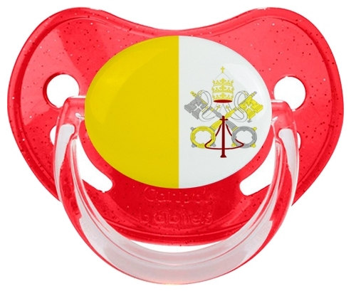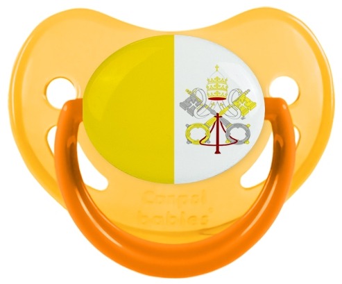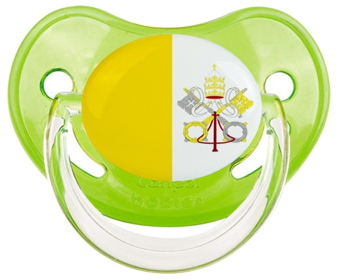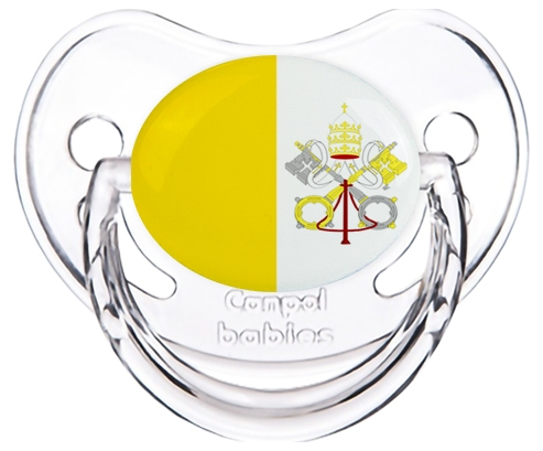 Chupete de bebé personalizado Bandera de la Santa Sede con punta Fisiológica de la marca Canpol Babies con estampado en Colores de la colección Bandera .La silicona se reconoce por su color transparente. Es un material flexible, suave, insípido e inodoro y ofrece al bebé una succión más fácil gracias a su flexibilidad.