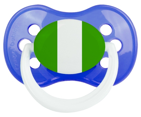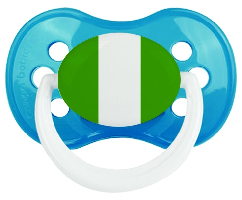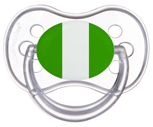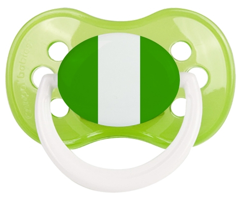 Chupete de bebé personalizado Bandera de Nigeria con punta Anatómica de la marca Canpol Babies con estampado en Colores de la colección Bandera .La silicona se reconoce por su color transparente. Es un material flexible, suave, insípido e inodoro y ofrece al bebé una succión más fácil gracias a su flexibilidad.
