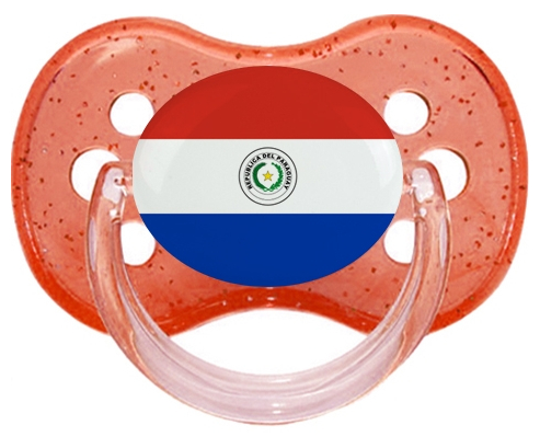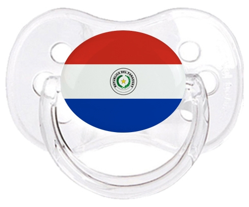 Chupete de bebé personalizado Bandera de Paraguay con punta Cereza de la marca Canpol Babies con estampado en Colores de la colección Bandera .La silicona se reconoce por su color transparente. Es un material flexible, suave, insípido e inodoro y ofrece al bebé una succión más fácil gracias a su flexibilidad.