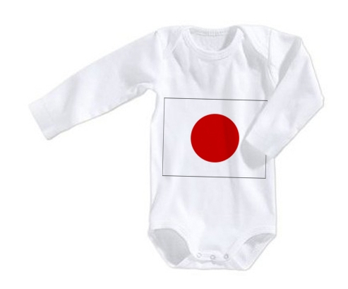 Body personalizado de Bandera Japón con estampado de colores, en algodón con escote americano cruzado y manga corta o larga. Se cierran con botones a presión en la entrepierna para facilitar el cambio. Los bodis son la pieza fundamental del primer vestidor del bebé, especialmente los personalizados. ¡Aprovéchate de comodidad y suavidad para tu bebé enamorándote de este magnífico body de manga larga o corta!, 100% algodón.