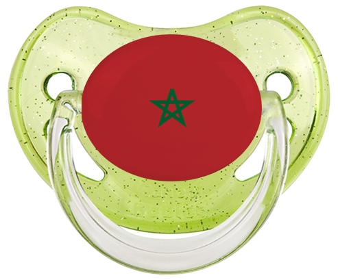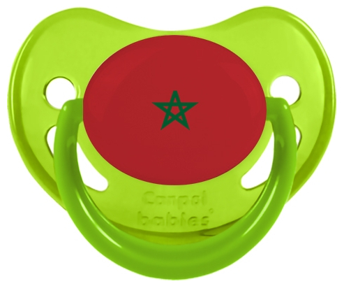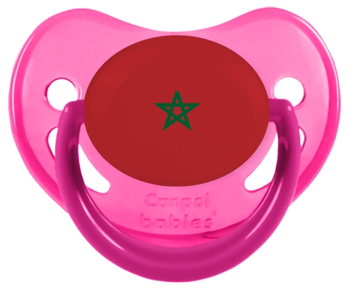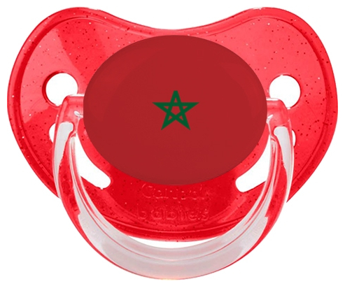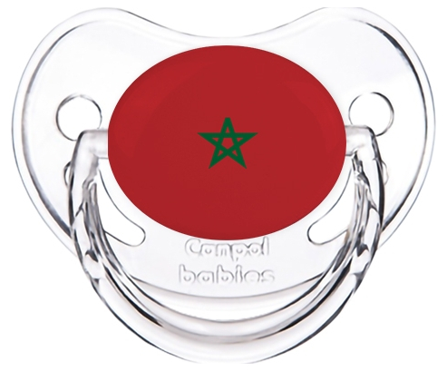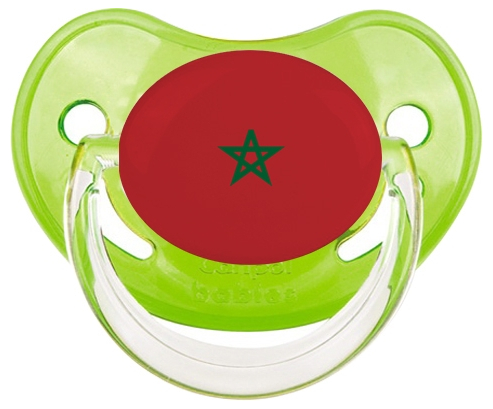 Chupete de bebé personalizado Bandera Marruecos con punta Fisiológica de la marca Canpol Babies con estampado en Colores de la colección Marruecos .La silicona se reconoce por su color transparente. Es un material flexible, suave, insípido e inodoro y ofrece al bebé una succión más fácil gracias a su flexibilidad.