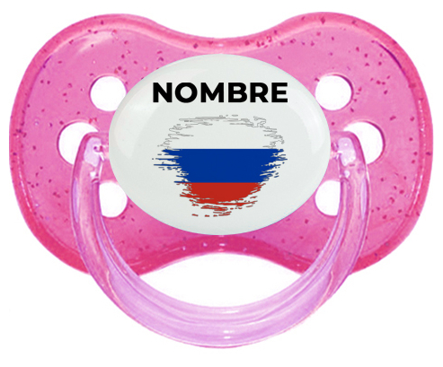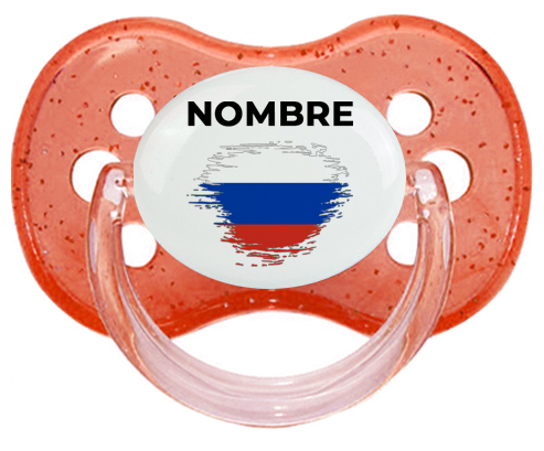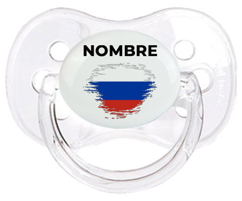 Chupete de bebé personalizado Bandera de efecto pincel ruso con nombre con punta Cereza de la marca Canpol Babies con estampado en Colores de la colección Rusia .La silicona se reconoce por su color transparente. Es un material flexible, suave, insípido e inodoro y ofrece al bebé una succión más fácil gracias a su flexibilidad.