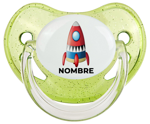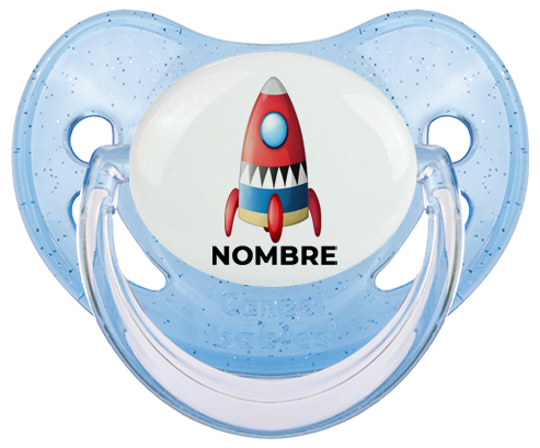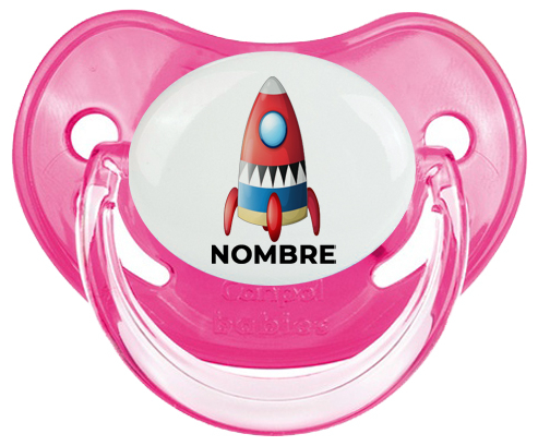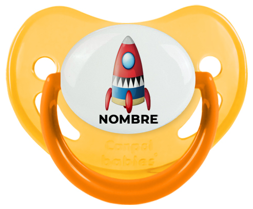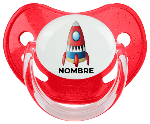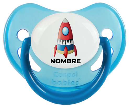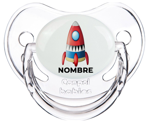 Chupete de bebé personalizado Juguetes de juguete Rocket con nombre con punta Fisiológica de la marca Canpol Babies con estampado en Colores de la colección Cohete .La silicona se reconoce por su color transparente. Es un material flexible, suave, insípido e inodoro y ofrece al bebé una succión más fácil gracias a su flexibilidad.